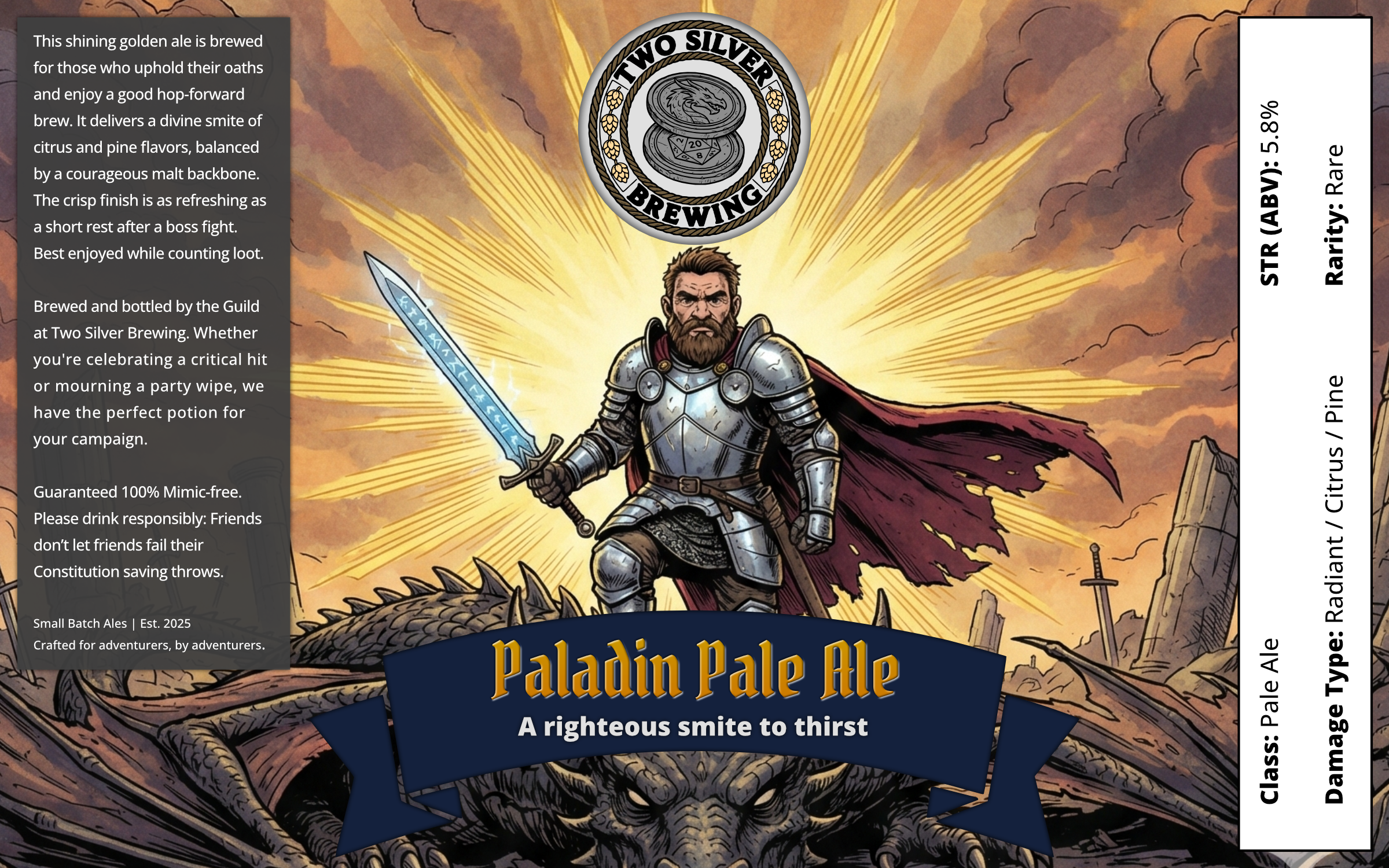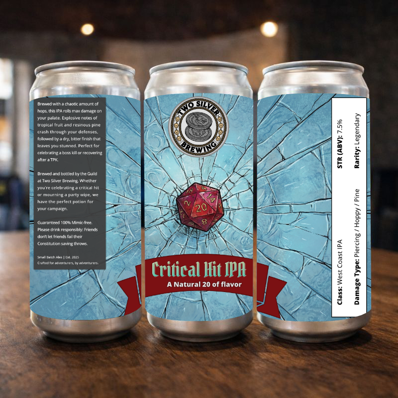 To ground the high-fantasy theme in a retail setting, I developed a cohesive design system where each can represents a classic RPG character class. The label features a custom “Stat Block” side panel, which replaces the standard marketing copy with game mechanics (Strength, Rarity, Damage Type) in order to gamify the consumer experience.